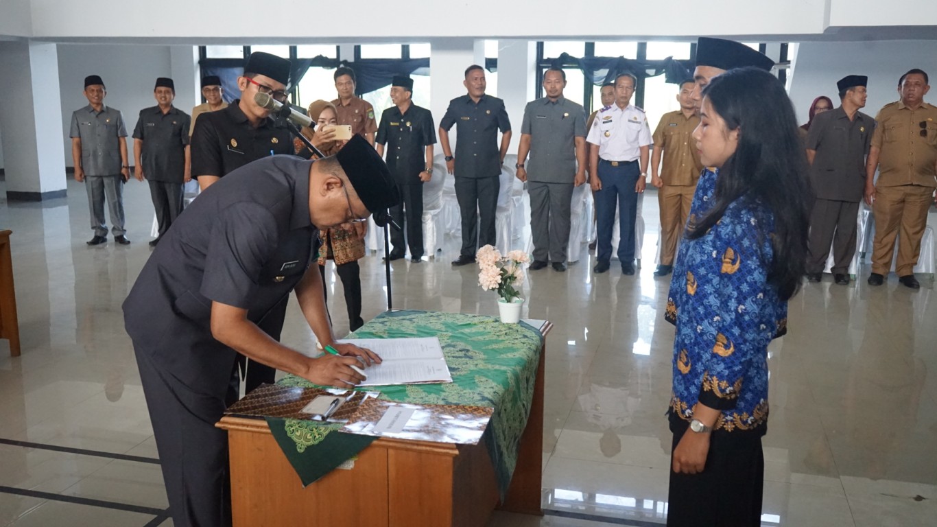 Bengkulu Tengah, MC Benteng - Pemerintah Kabupaten Bengkulu Tengah melalui Badan Kepegawaian Sumber Daya Manusia (BKPSDM) melaksanakan acara pengambilan Sumpah/Janji bagi CPNS formasi 2021 di Balai Raflesia Pusat Perkantoran Pemda Bengkulu Tengah. Selasa (28/3/2023)