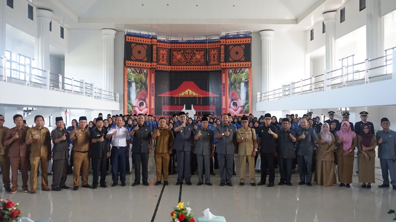 " Semua PNS akan di setarakan jabatannya ke Fungsional, karena itu merupakan ketentuan yang berlaku. Pelantikkan untuk seluruh PNS formasi 2019 dan 2021 ke jabatan Fungsional di jadwalkan dalam waktu dekat ini dengan ketentuan yang telah di sampaikan oleh BKN pusat, sehingga mereka akan mendapatkan tambahan penghasilan tunjangannya nanti." tutupnya (MC/EK)