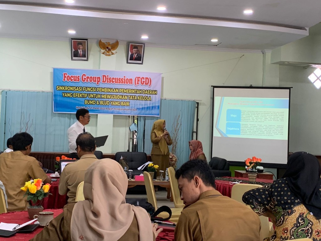 Dalam sambutannya Asisten II Eka Nurmaeni menjelaskan bahwa kegiatan FGD ini merupakan forum diskusi untuk mensinkronkan fungsi dari Pemda dalam melaksanakan tata kelola yang baik dalam bersinergi.