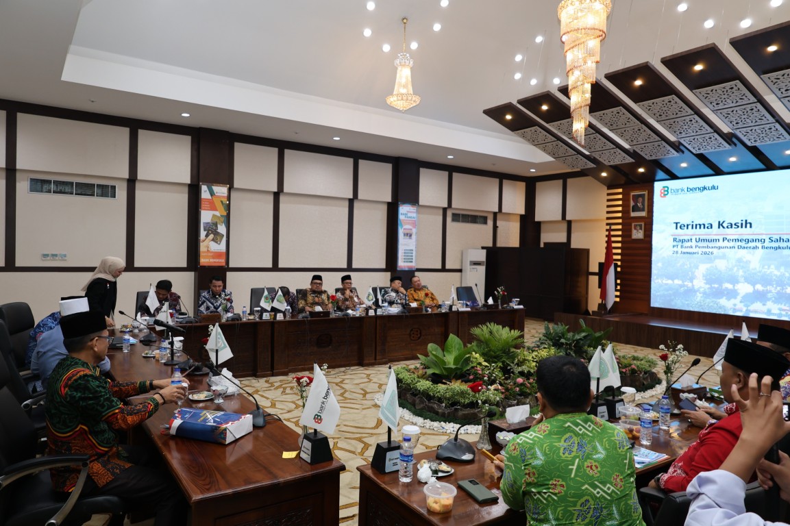 Bengkulu, MC Benteng- PT Bank Pembangunan Daerah Bengkulu (Bank Bengkulu) menggelar Rapat Umum Pemegang Saham (RUPS) Tahun Buku 2025 pada Selasa, 28 Januari 2026, bertempat di Aula Mochtar Azehari Lantai 7, Graha Bank Bengkulu.