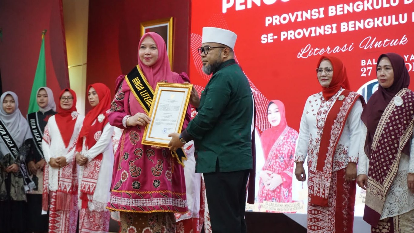 Acara pengukuhan ini juga diwarnai dengan pemberian selempang Bunda Literasi dan Piagam pengukuhan oleh Gubernur Bengkulu.