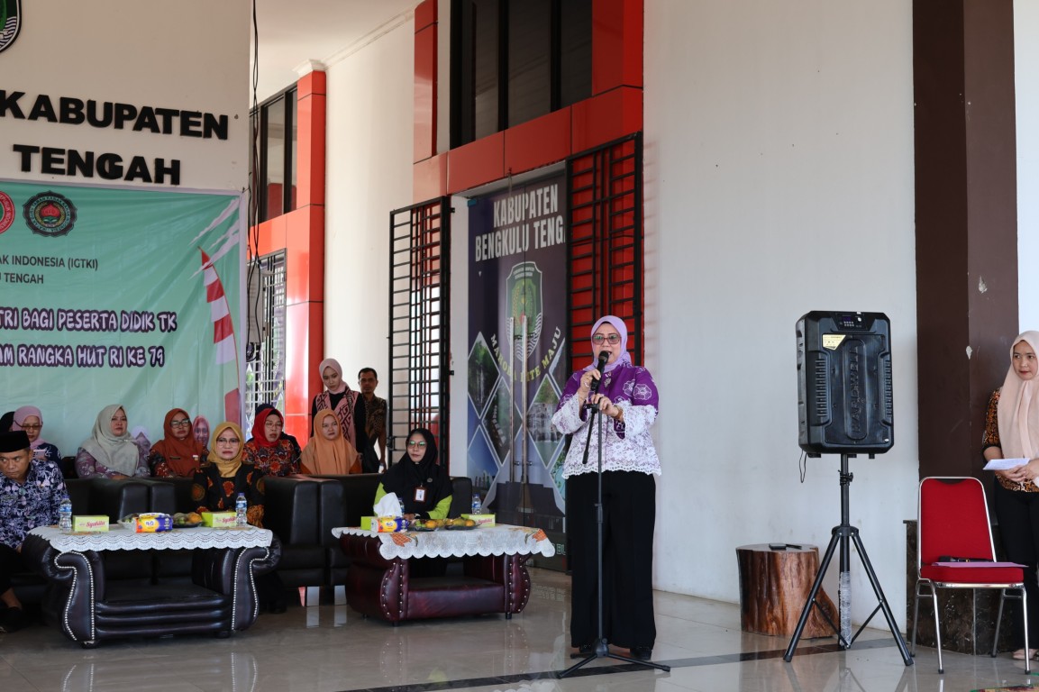 Hadir langsung Bunda Paud Bengkulu Tengah dr. Dian A.R. Heri Roni., TP Paud Bengkulu Tengah Dr. S. Damarini Rachmat, MPH., Kepala Dinas Dikbud Drs. Tomi Marisi, M.Si, Ketua IGTKI (Ikatan Guru Taman Kanak-Kanak Indonesia) beserta jajaran, serta undangan lainnya.