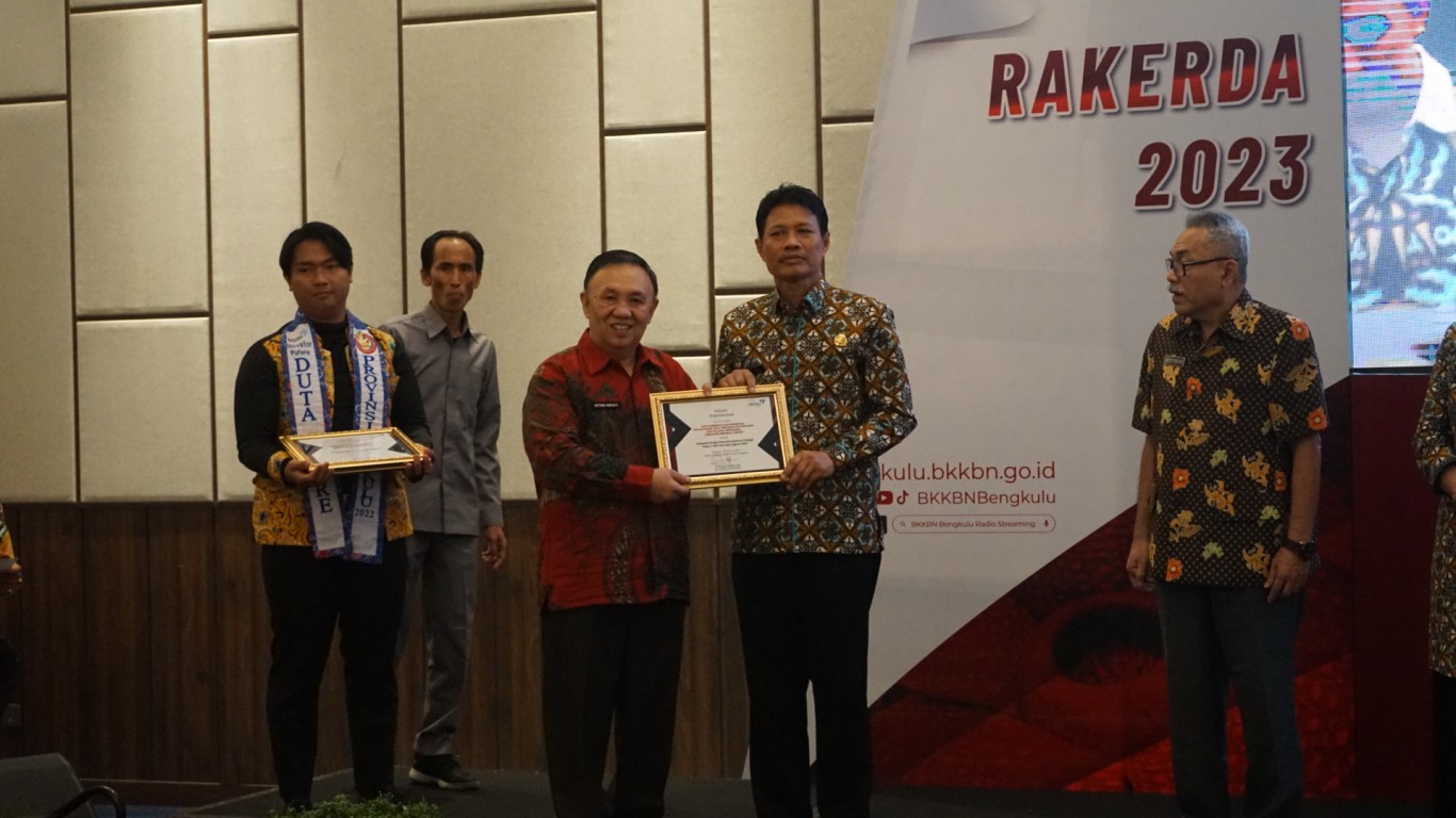 Penjabat Bupati Bengkulu Tengah Dr. Heriyandi Roni, M.Si., melalui Kadis P3AP2KB Ir. Wijaya Atmaja, M.Si., menerima secara langsung piagam penghargaan yang di berikan oleh Deputi Bidang KSPK BKKBN RI Nopian Andusti, S.E., M.T., dan Wakil Gubernur Bengkulu yang juga merupakan Ketua TPPS dan Kemiskinan Provinsi Bengkulu Dr. H. Rosjonsyah Syahili Sibarani, S. Sos, M. Si.,