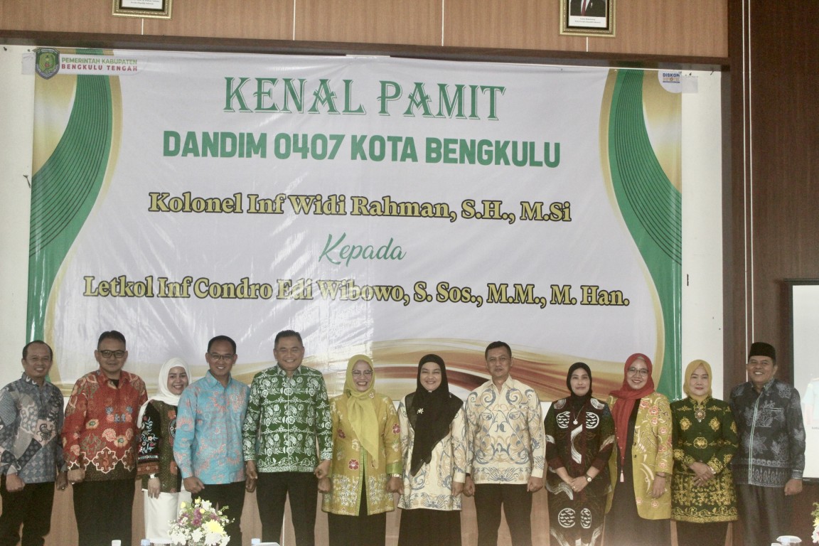 Bengkulu Tengah, MC Benteng - Pemerintah Kabupaten Bengkulu Tengah menggelar Acara Kenal Pamit Dandim 0407 Kota Bengkulu Kolonel Inf Widi Rahman, S.H., M.Si., kepada Letkol Inf Edi Wibowo, S.Sos., M.M., M.Han., Pendopo Bukit Kandis Kabupaten Bengkulu Tengah. Sabtu, (13/09/2025)