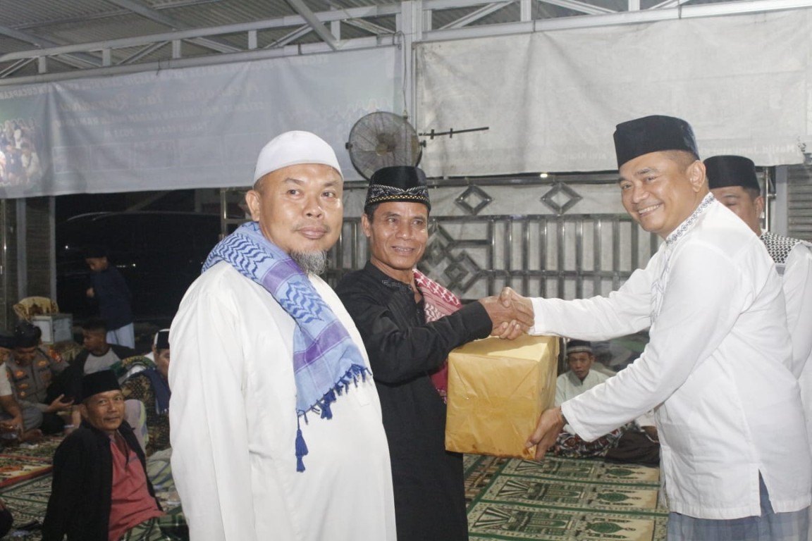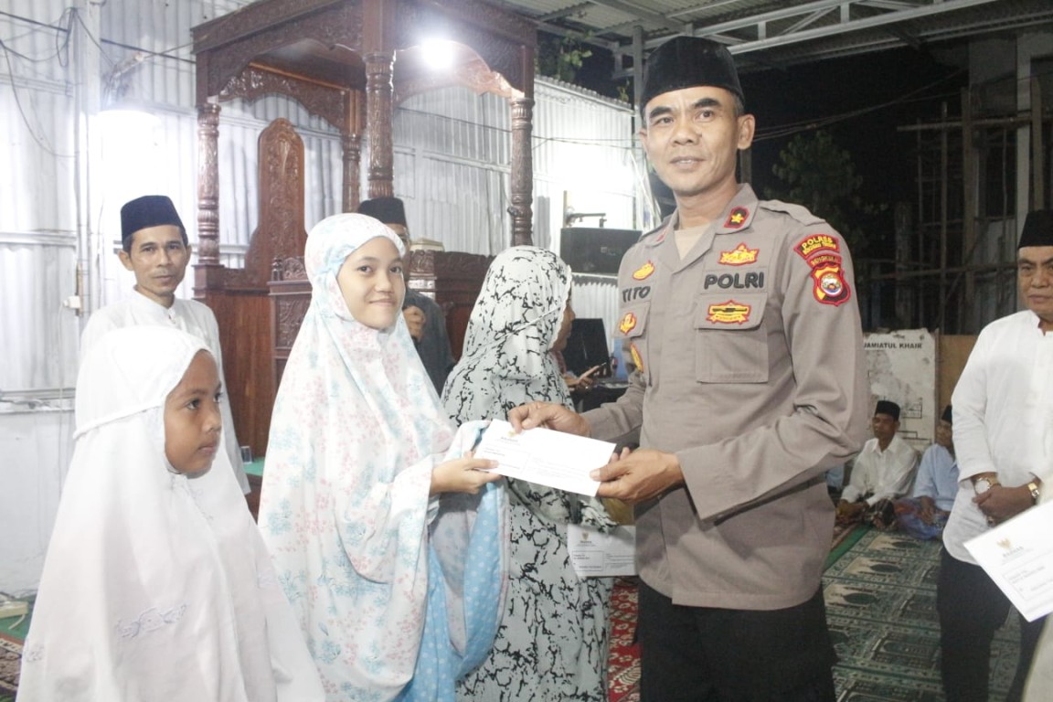 Setelah sholat tarawih berjamaah Sekda Bengkulu Tengah di dampingi Waka Polres, Kepala Kemenag serta Ketua Baznas Memberikan bantuan berupa Al-Qur'an, Sembako Kepada pengurus masjid dan masyarakat Desa Taba Mutung sementara bantuan uang infak diberikan kepada anak yatim piatu.