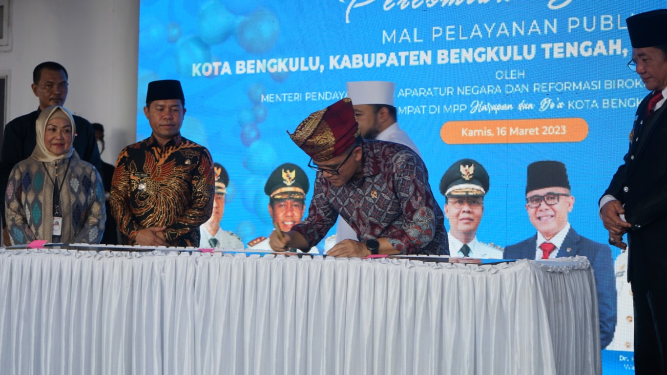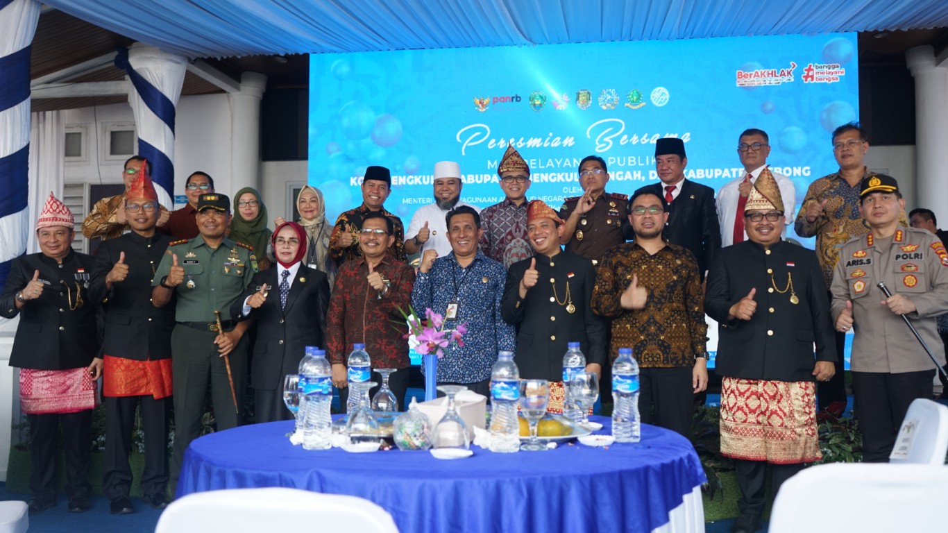 Bengkulu - Mal Pelayanan Publik (MPP) Kabupaten Bengkulu Tengah di resmikan secara langsung oleh Menteri Pendayagunaan Aparatur Negara dan Reformasi Birokrasi (PANRB) Abdullah Azwar Anas, M.Si., yang berpusat di MPP Kota Bengkulu dan di hadiri secara langsung oleh Penjabat Bupati Bengkulu Tengah Dr. Heriyandi Roni, M.Si., Kamis (16/3/2023)