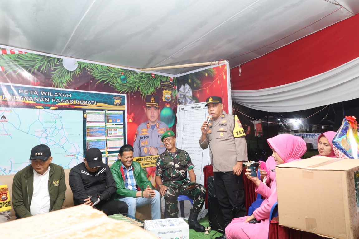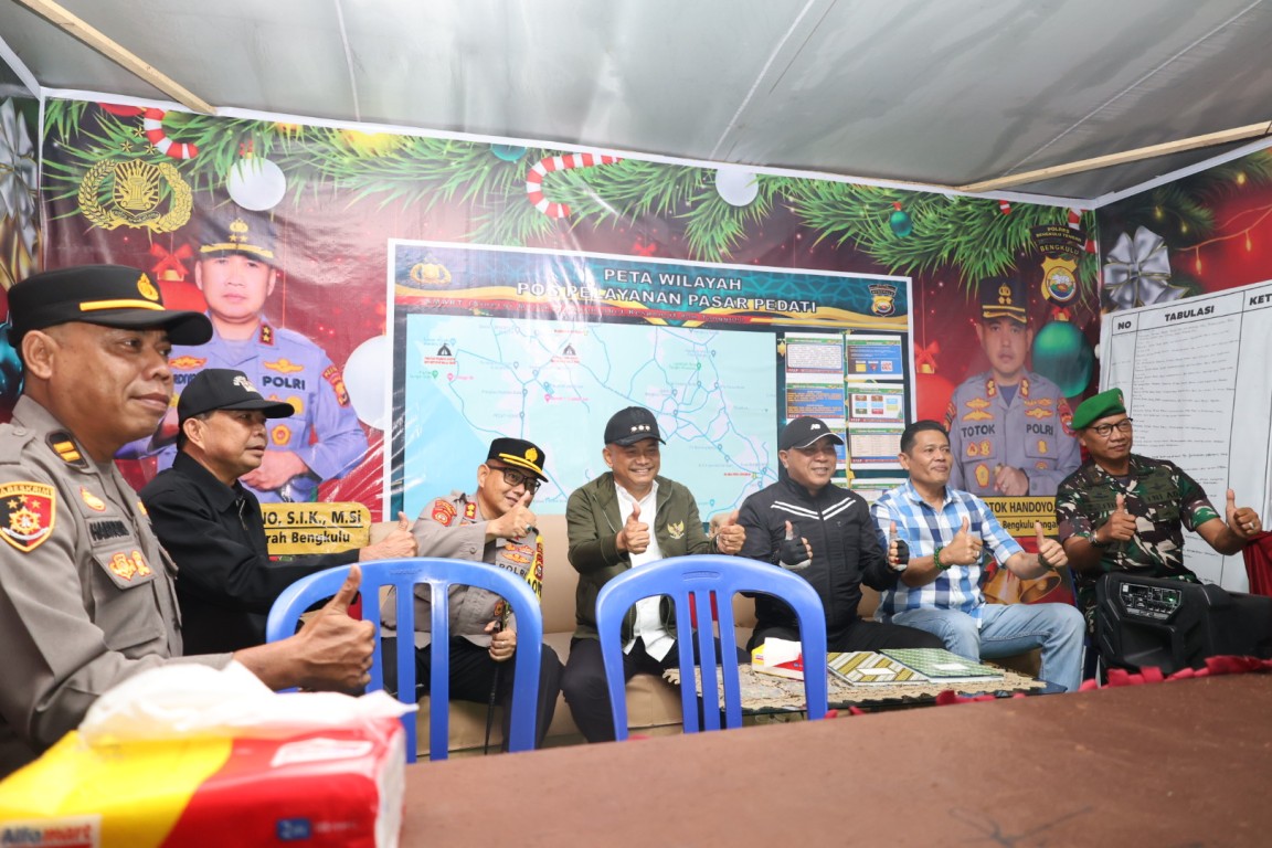 Bengkulu Tengah, MC Benteng – Bupati Bengkulu Tengah Drs. Rachmat Riyanto, S.T., M.AP., bersama Wakil Bupati Bengkulu Tengah Tarmizi, S.Sos., melakukan pengecekan langsung Pos Pengamanan (Pos PAM) Natal dan Tahun Baru (NATARU) 2025 di kawasan Pasar Pedati, Gerbang Tol Taba Penanjung dan Liku Sembilan, Rabu malam (31/12/2025).
