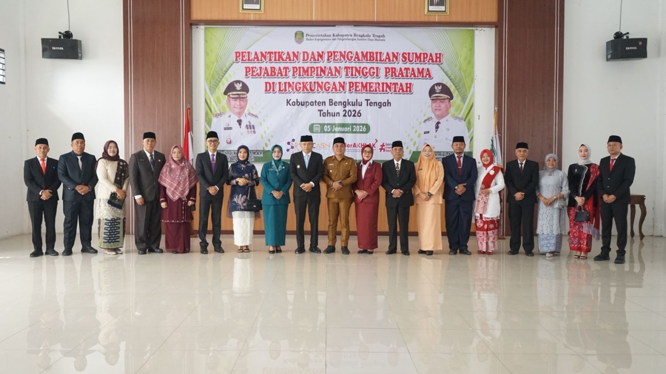 Bengkulu Tengah, MC Benteng – Pemerintah Kabupaten Bengkulu Tengah kembali melakukan penyegaran birokrasi melalui rotasi dan pelantikan Pejabat Pimpinan Tinggi Pratama, yang secara langsung dilantik dan diambil sumpah jabatannya oleh Bupati Bengkulu Tengah, Drs. Rachmat Riyanto, S.T., M.AP., bertempat Pendopo Bukit Kandis. Senin (5/1/2026)