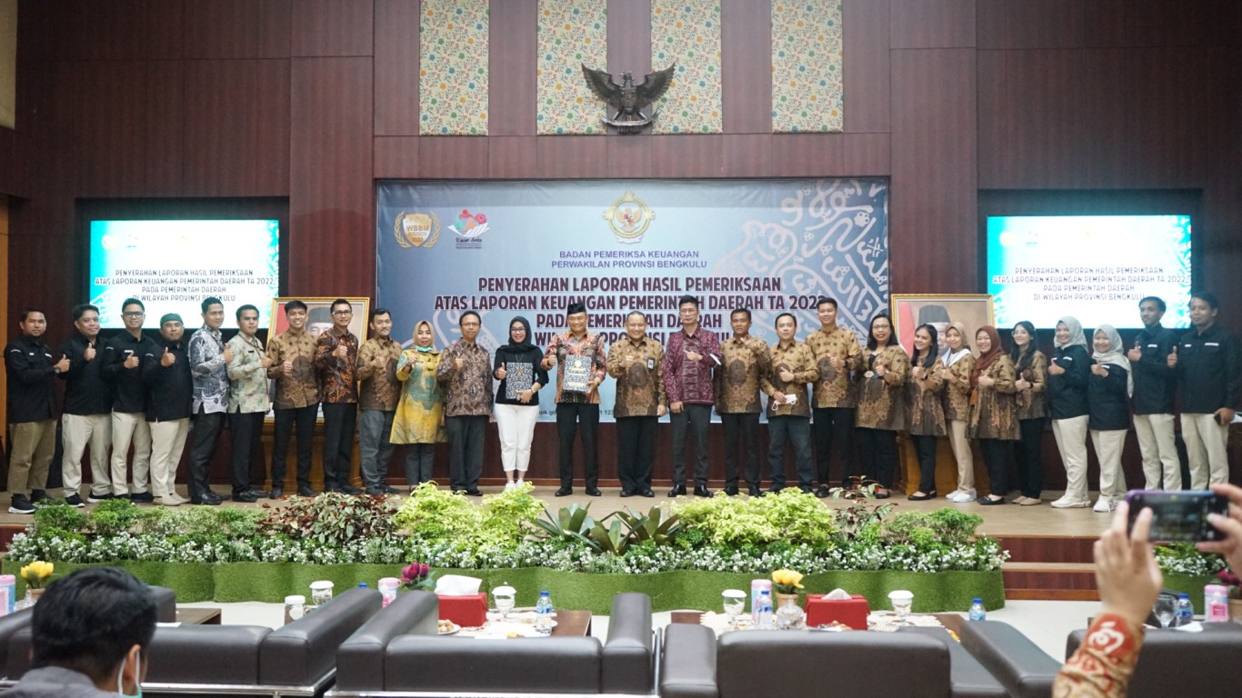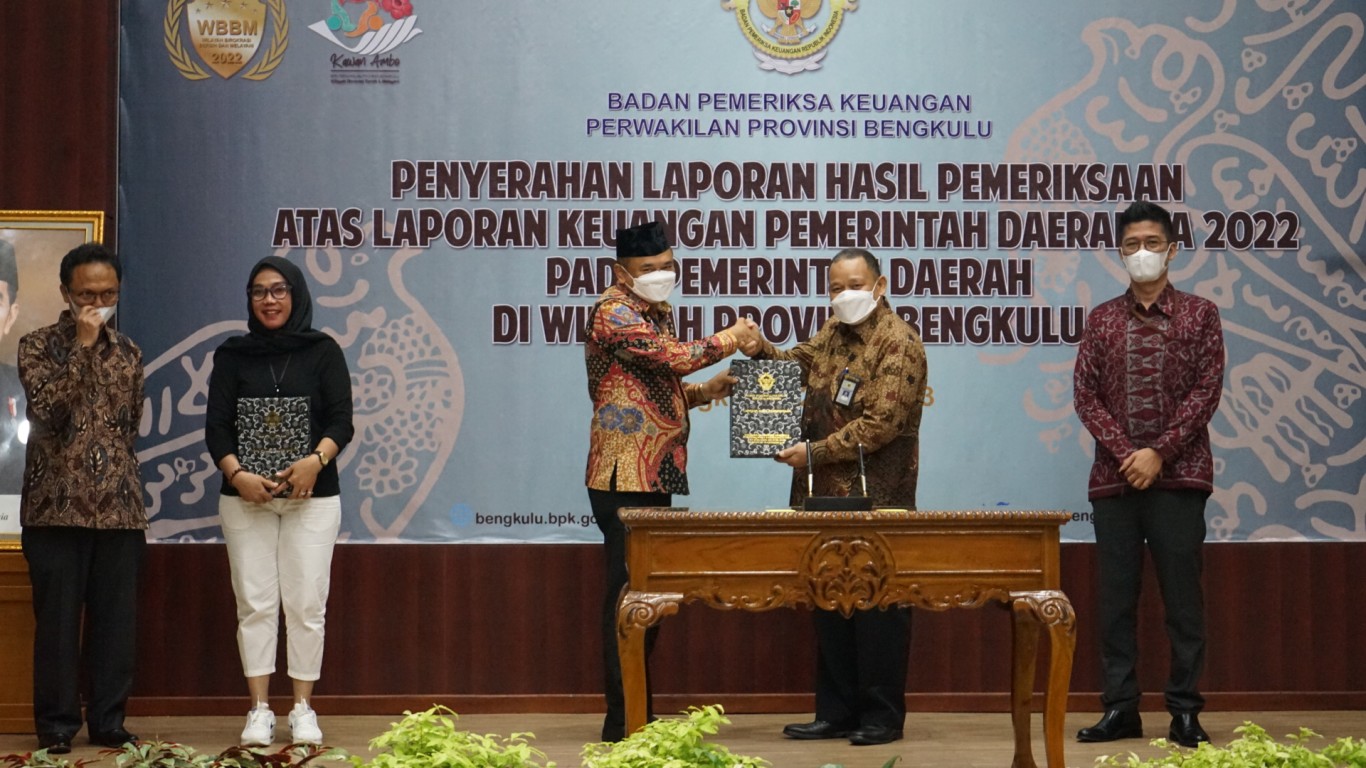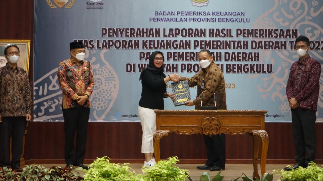 Kepala BPK Perwakilan Provinsi Bengkulu Muhammad Toha Arafat menyampaikan secara langsung LHP atas LKPD tahun anggaran 2022 kepada Sekretaris Daerah Bengkulu Tengah Drs. Rachmat Riyanto, S.T., M.AP dan juga Wakil Ketua II DPRD Bengkulu Tengah Evi Susanti, S.IP., M.AP., serta beberapa Kepala Daerah serta Ketua DPRD lainnya di Wilayah Provinsi Bengkulu bertempat di kantor BPK Perwakilan Provinsi Bengkulu. Jum'at Pagi (12/5/2023)