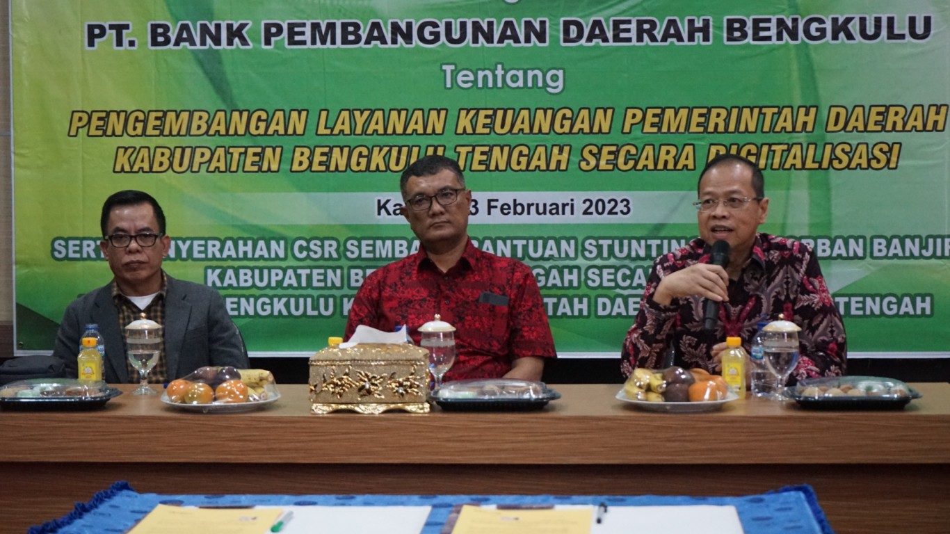 " Bagi Bank Bengkulu, Pemerintah Daerah merupakan tingkatan tertinggi, contohnya pemerintah Daerah Kabupaten Bengkulu Tengah. Sehingga apapun yang di butuhkan akan siap di bantu, dan di harapkan Pemerintah Kabupaten Bengkulu Tengah akan terus bersinergi, berbisnis dan berkolaborasi yang berkelanjutan di Bank Bengkulu. Selain itu, Bank Bengkulu juga memberikan bantuan sembako dari dana CSR kita dalam bentuk rasa kepedulian kita akan masyarakat yang membutuhkannya dan di harapkan bantuan sembako ini di pergunakan sebaik-baiknya." Jelasnya