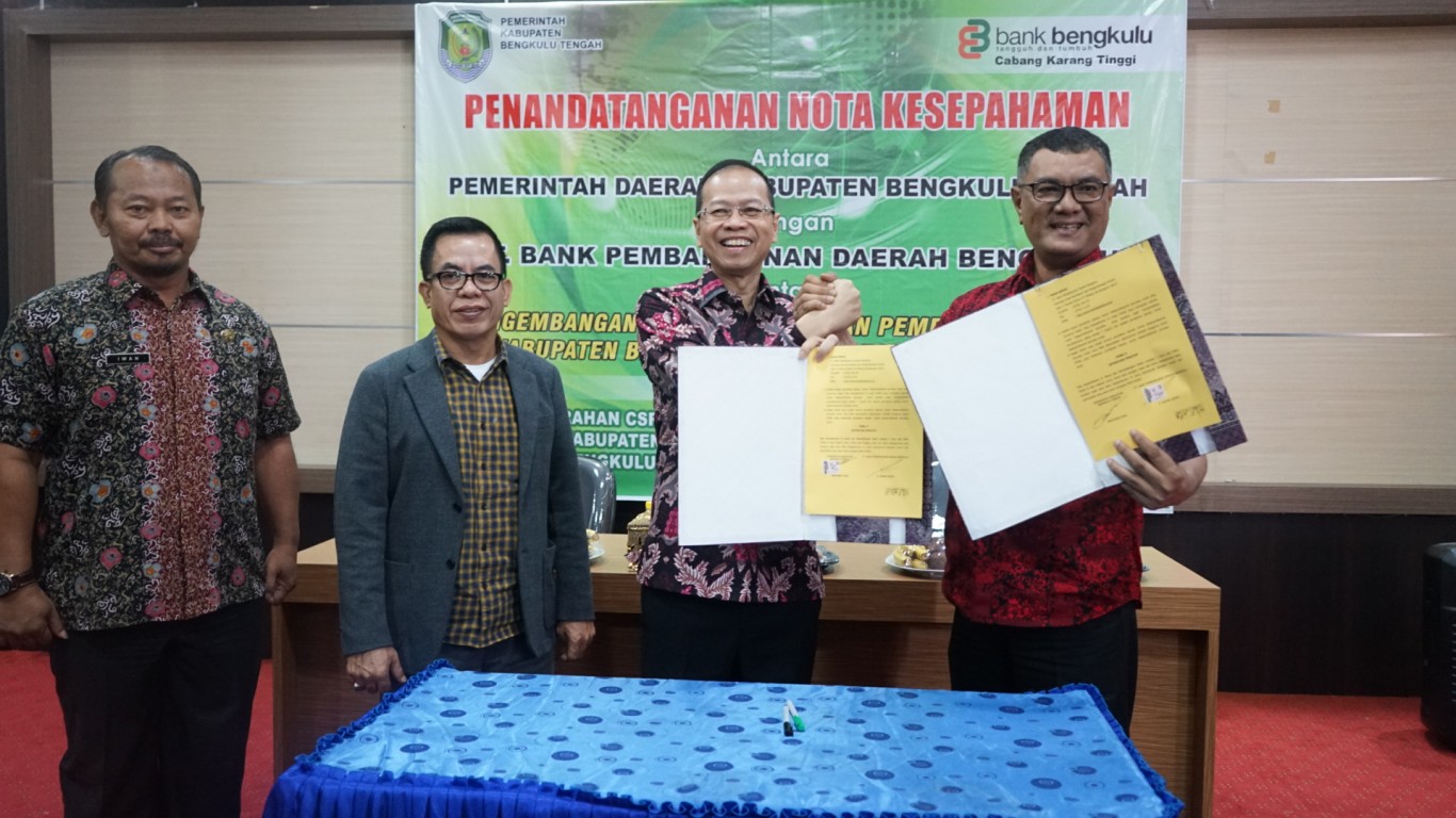Sementara itu, Pj Bupati Bengkulu Tengah Heri Roni menyampaikan ucapan terima kasih atas sinergitas dan kolaborasinya Bank Bengkulu dengan Pemkab Bengkulu Tengah, karena dengan adanya Kesepahaman ini dapat membantu memberikan pelayanan dalam bentuk digitalisasi yang di harapkan semakin optimal kedepannya.