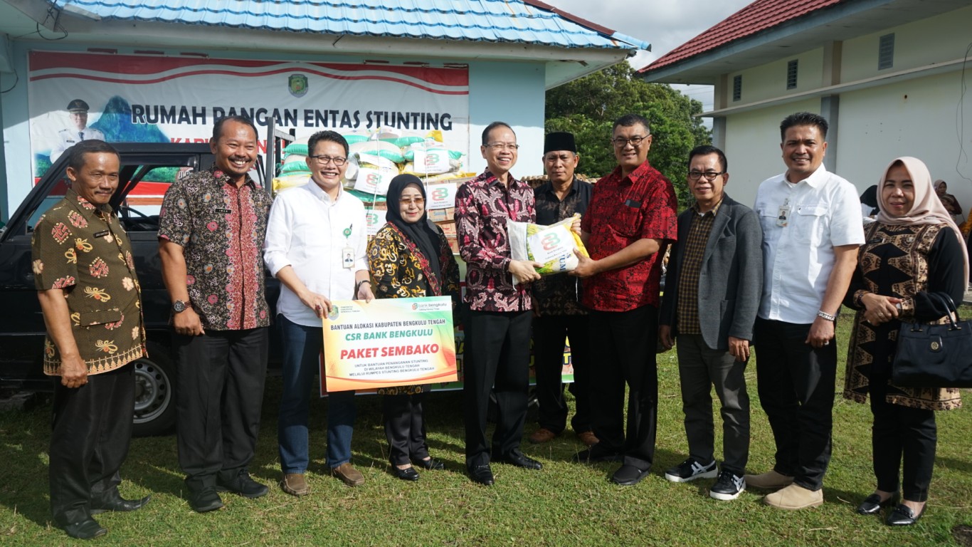Selain melakukan penandatangan Nota Kesepahaman, Bank Bengkulu juga memberikan bantuan Sembako sebagai Bantuan CSR untuk di berikan kepada Anak Stunting dan Korban terdampak Banjir yang lalu di Kabupaten Bengkulu Tengah.