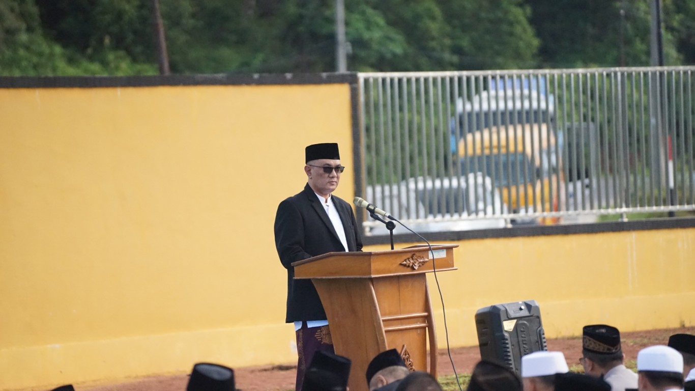 Bertindak sebagai imam sekaligus khatib Kepala Kantor Kementerian Agama (Kemenag) Bengkulu Tengah Drs. H Zainal Abidin, M.H.,