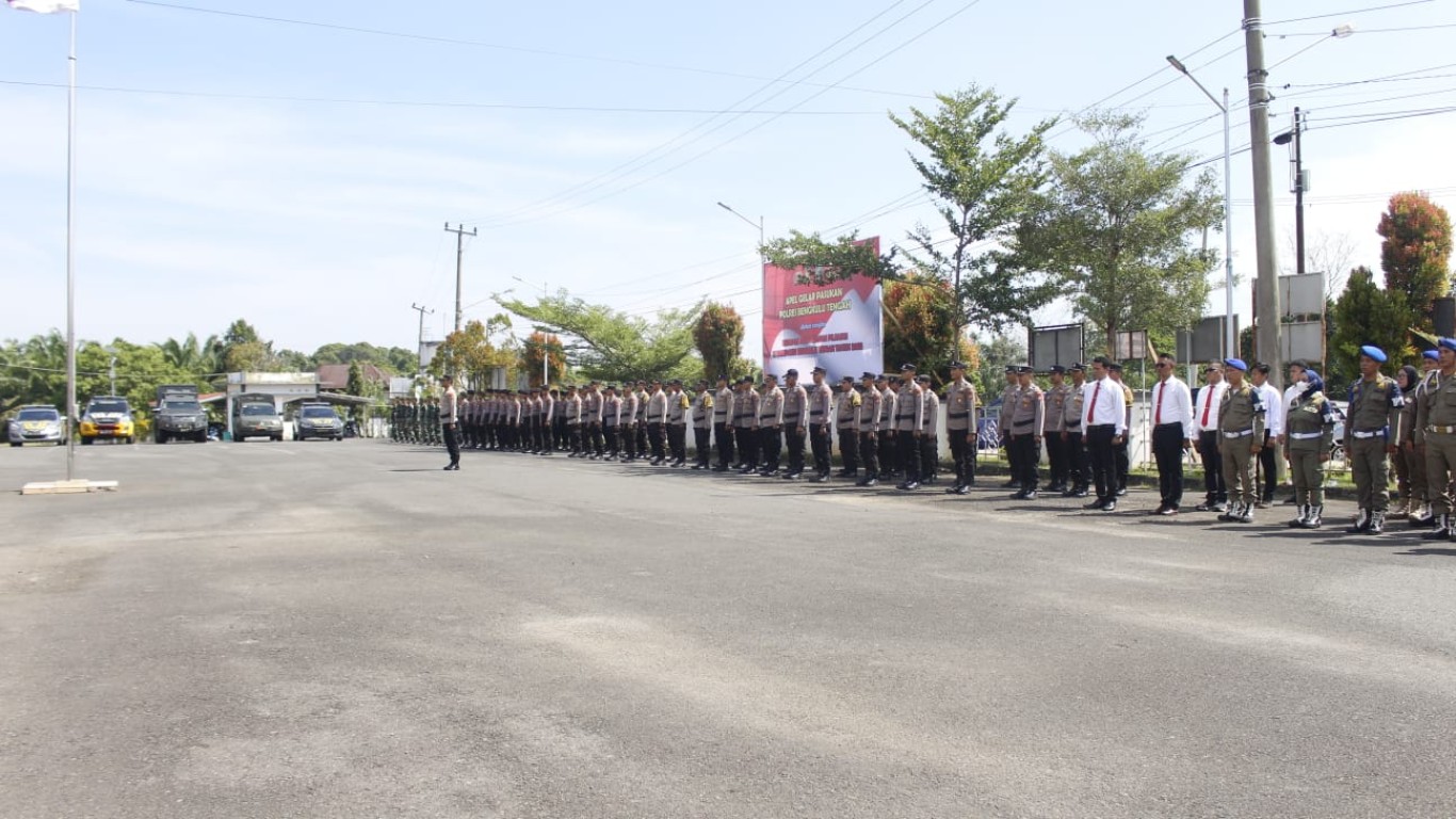 BENGKULU TENGAH- Dalam rangka akan dilaksanakan pemilihan Kepala Desa (Pilkades) serentak 2023 di 9 Kecamatan 19 Desa yang berlangsung hari senin besok Pemkab Bengkulu Tengah menggelar apel persiapan personil pengamanan di halaman depan Kantor Bupati Kecamatan Karang Tinggi Minggu siang (21/05).