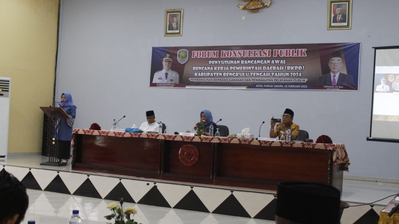 BENGKULU TENGAH- Setelah menjalani beberapa tahap untuk dokumen perencanaan Pembangunan tahun 2024 mendatang maka Pemerintah Kabupaten Bengkulu Tengah melalui Badan Perencanaan Pembangunan Daerah (BAPPEDA) melaksanakan kegiatan Forum Konsultasi Publik tentang Penyusunan Rancangan Awal Rencana Kerja Pemerintah Daerah (RKPD).