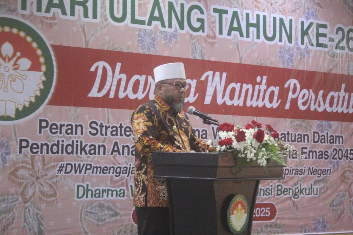 “AcaraHari Ulang Tahun Dharma Wanita Persatuan (DWP) ke-26 di Provinsi Bengkulu ini mengusung tema "Peran Strategis Dharma Wanita Persatuan dalam Pendidikan Anak Bangsa untuk Indonesia Emas 2045", dengan tema ini, mari kita bersama mengapresiasi peran penting DWP sebagai garda terdepan pendukung pembangunan bangsa. Dharma Wanita Persatuan tidak hanya menjadi motor penggerak pemberdayaan perempuan, tetapi juga merupakan teladan utama dalam menanamkan nilai-nilai pendidikan, karakter, dan budi pekerti bagi generasi penerus bangsa. Semoga semangat kebersamaan, kreativitas, dan dedikasi DWP terus menginspirasi langkah kita bersama menuju Indonesia yang maju, unggul, dan berdaya saing.