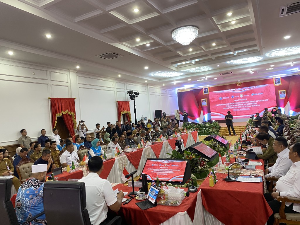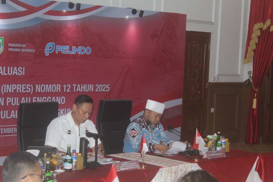 Menteri Koordinator (Menko) Bidang Infrastruktur dan Pembangunan Kewilayahan Agus Harimurti Yudhoyono (AHY) memimpin rapat koordinasi evaluasi implementasi Instruksi Presiden Nomor 12 Tahun 2025 tentang Normalisasi Pelabuhan Pulau Baai Kota Bengkulu dan pembangunan pulau terluar yaitu Pulau Enggano.