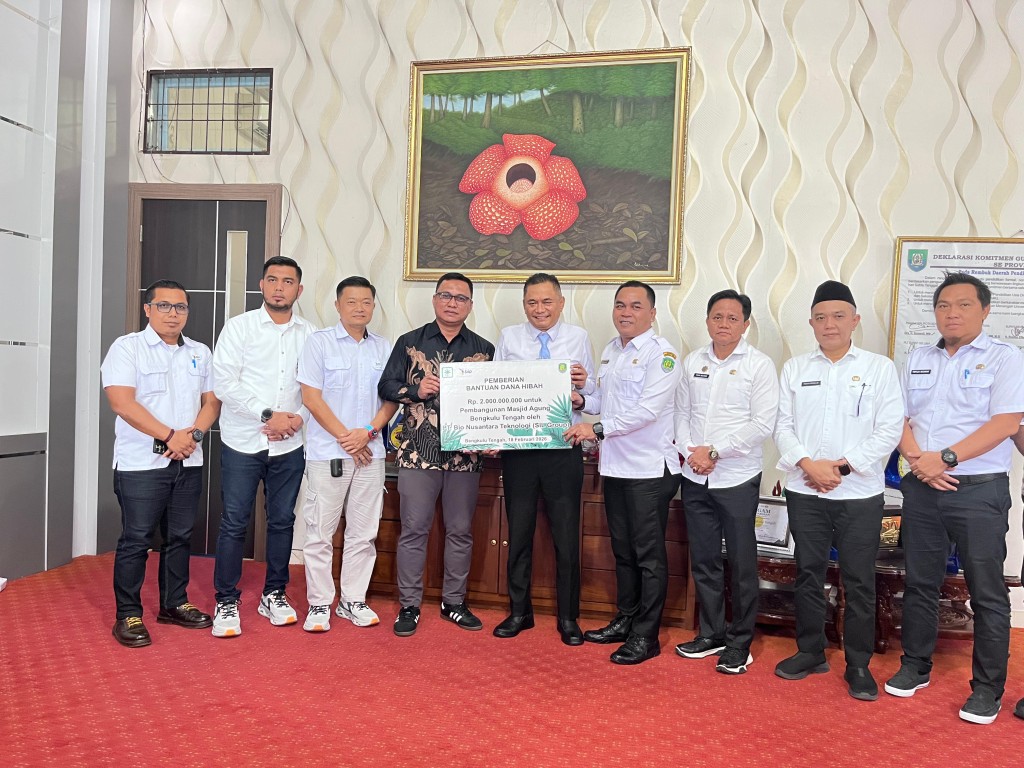 Bengkulu Tengah, MC Benteng — Pemerintah Kabupaten Bengkulu Tengah menerima bantuan dana hibah sebesar Rp2.000.000.000 (dua miliar rupiah) dari PT BIO Nusantara Teknologi di bawah naungan SIL Group yang sampaikan oleh General Manager PT. Bio Nusantara Teknologi Heru Wiratmana. Bantuan tersebut diberikan sebagai dukungan terhadap pembangunan Masjid Agung Bengkulu Tengah guna menunjang sarana keagamaan serta meningkatkan kesejahteraan masyarakat.