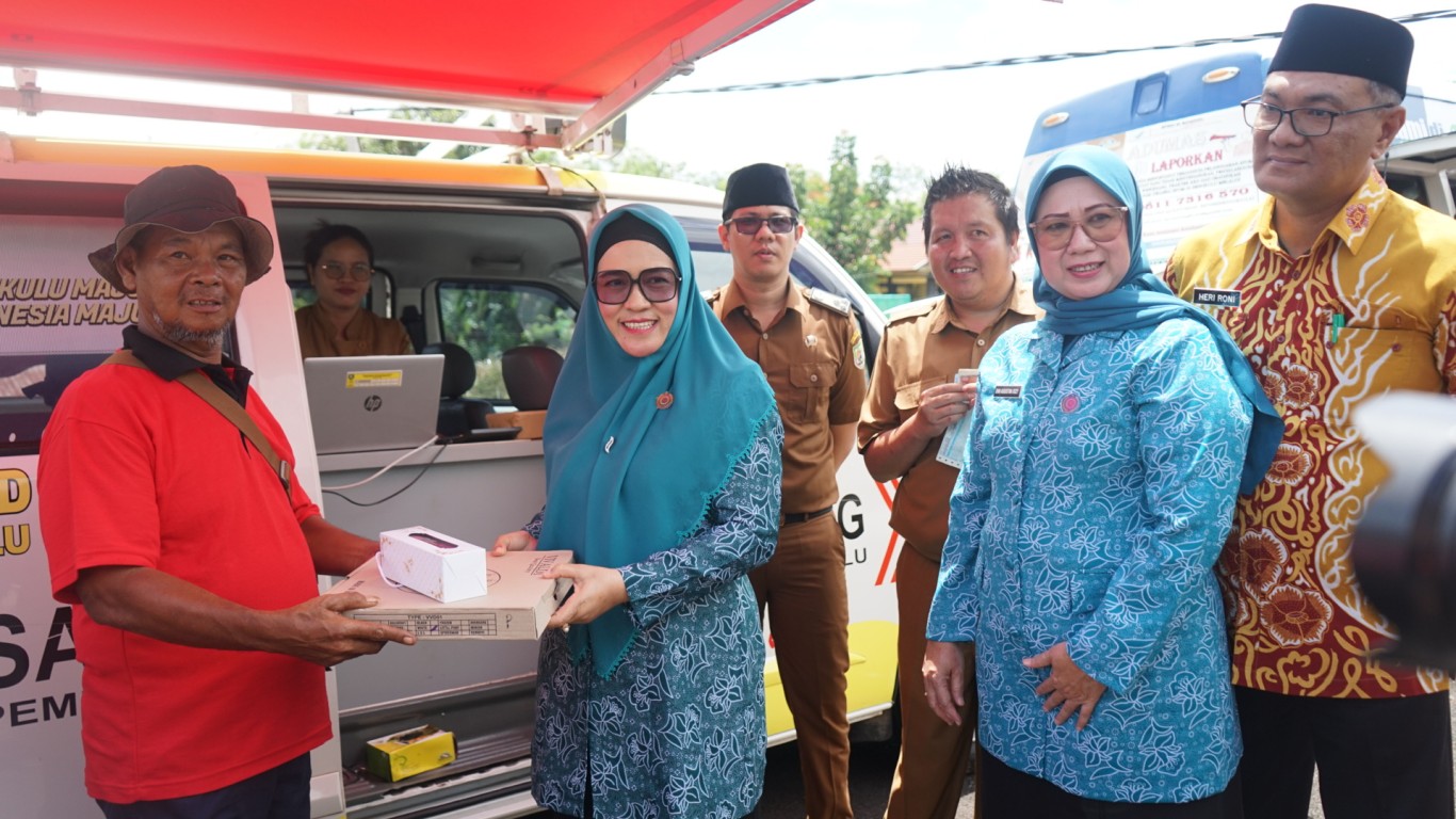 Setelah Sambutan berlangsung , Ketua TP PKK Provinsi Bengkulu bersama PJ. Ketua TP PKK Bengkulu Tengah, PJ. Bupati memberikan bantuan berupa alat-alat UMKM, Alat pertanian, Makanan Batita dan Ibu Hamil serta beberapa bantuan lainnya secara simbolis kepada penerima. (MC/EK)