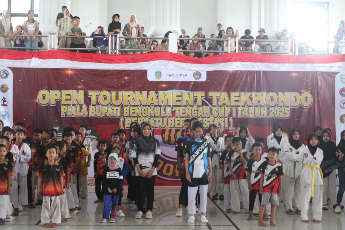 Bengkulu Tengah, MC Benteng – Dalam rangka memperingati Hari Ulang Tahun (HUT) ke-17 Kabupaten Bengkulu Tengah, Dinas Pemuda dan Olahraga (Dispora) Kabupaten Bengkulu Tengah bekerjasama dengan Pengurus Taekwondo Indonesia Kabupaten Bengkulu Tengah menyelenggarakan Open Turnamen Taekwondo Bupati Benteng Cup I Se-Provinsi Bengkulu Tahun 2025.